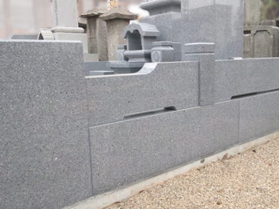 他業者の施工墓石は基礎と石の間のモルタルに多くのクラックが入っていましたが、この違いからもD・BOXの凄さがわかります。