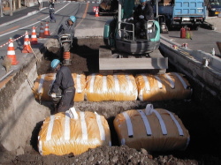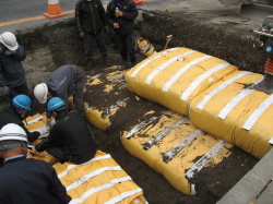 高規格土のう「ソイルバッグ工法」で道路工事 北海道