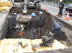 2008年11月28日(金)埼玉県加須市国道125号線横の沼地にて土のうを用いた沼地載荷試験の見学会を実施しました。