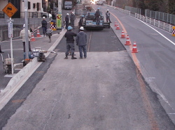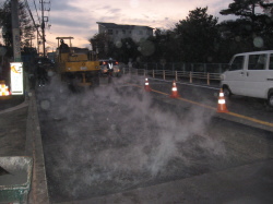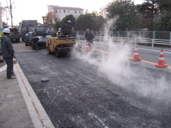 舗装厚さ4cmでも大型ダンプ(満載時20t)の通行に十分耐えました。