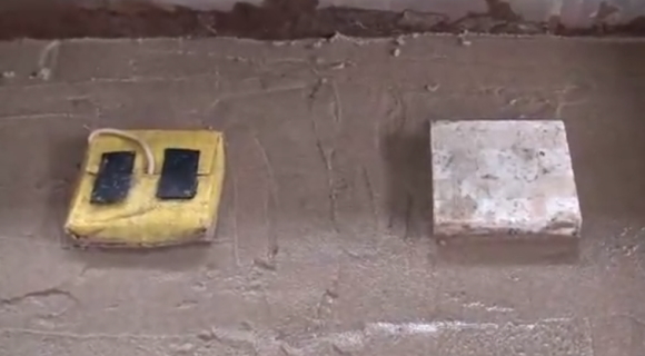 ソイルバッグとコンクリート、基礎モデル液状化比較試験